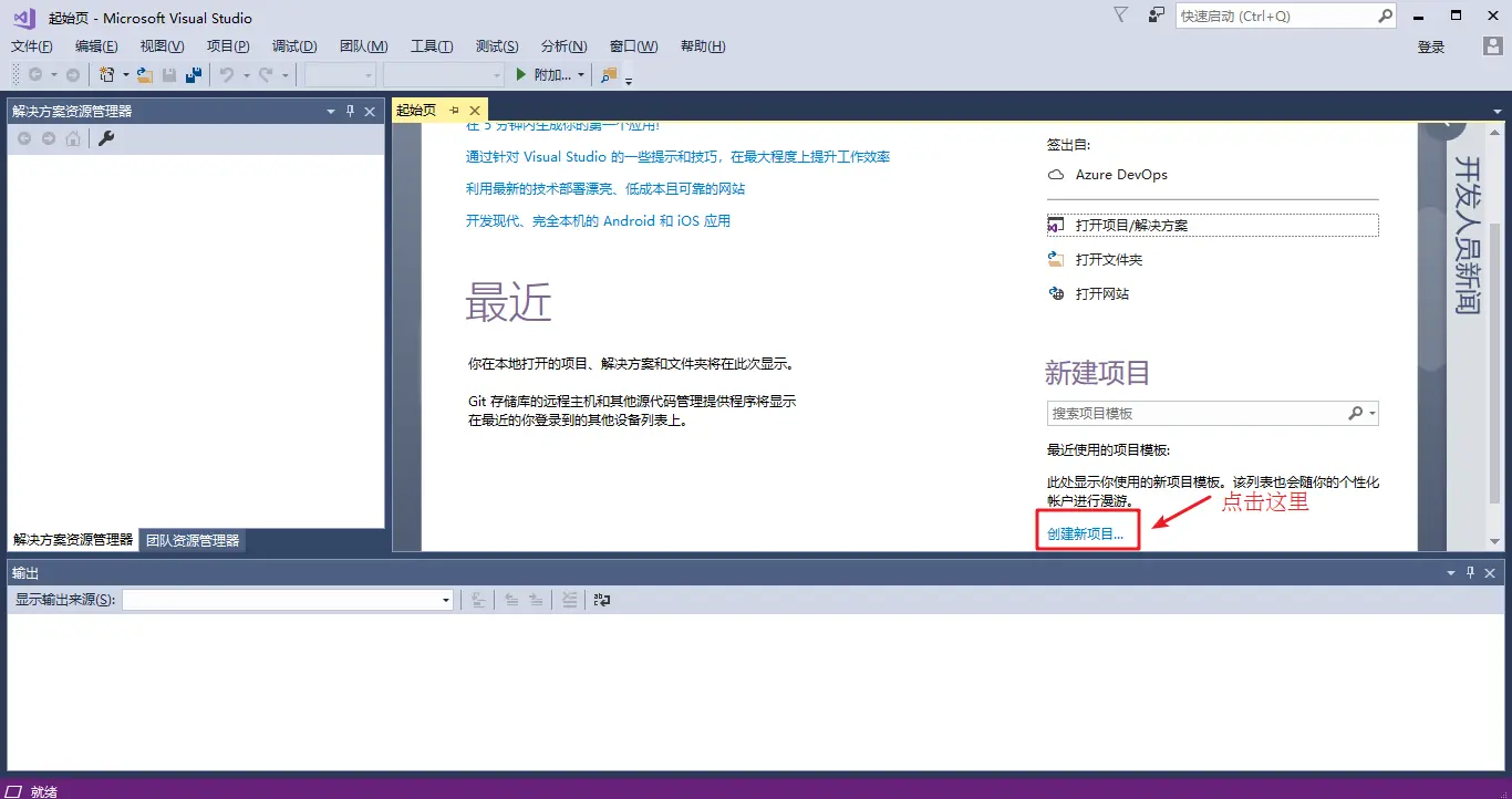 Visual Studio是我们用来编写C++程序的主要工具,我们先将它打开