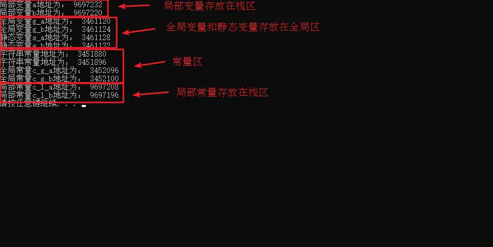 1 2 3 4 5 6 7 8 9 10 11 12 13 14 15 16 17 18 #define day 7 int main () { cout << "一周里总共有 " << day << " 天" << endl; const int month = 12 ; cout << "一年里总共有 " << month << " 个月份" << endl; system ("pause" ); return 0 ; }